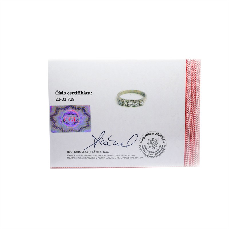 14 karátové bílé zlato 585, celková hmotnost 2,07 g | Přírodní diamanty briliantového brusu 0,61 ct ( vzácně bílý F-G-H ) | 2.pol. 20.století | Výborný stav | Velikost prstenu 51 | Kameny zkontrolovány v gemologické laboratoři | Přiložen certifikát pravosti ČGL | Zařizujeme veškerý profesionální zlatnický servis - úpravy velikosti, opravy, rhodiování, čištění, výměnu kamenů, znalecké odhady, certifikace a další služby dle vašich potřeb.