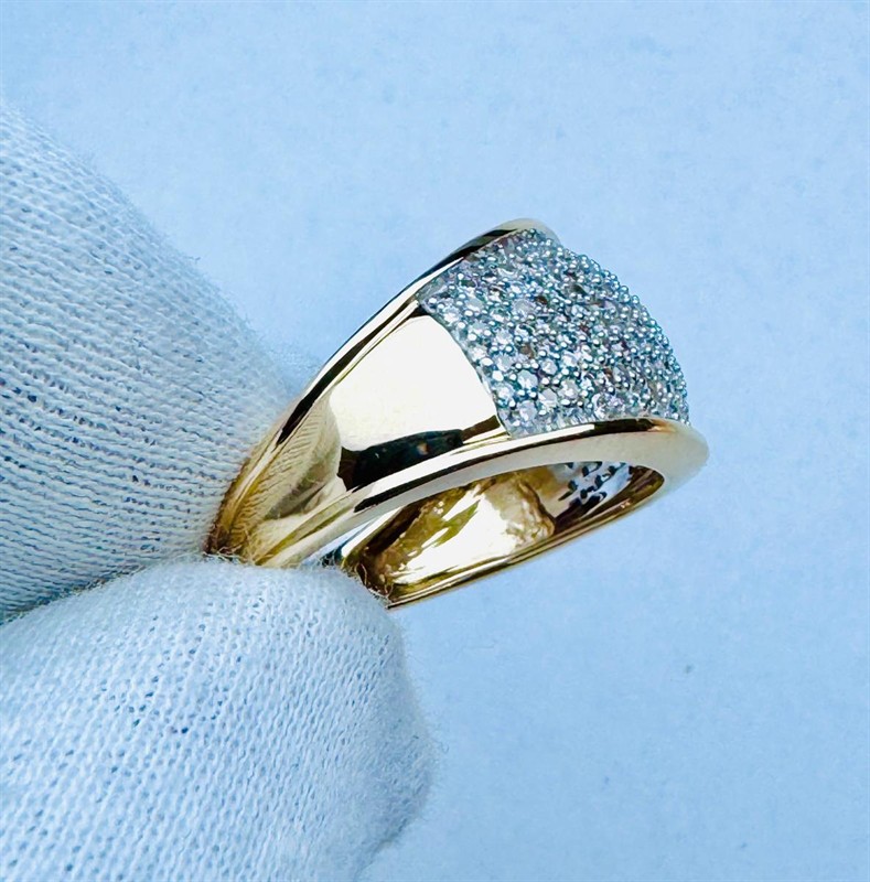 14 kt zlatý prsten je osazen 190ti přírodními diamanty - brilianty o váze cca. 1,90ct. H/VSI-SI , prsten je vyrobený ze 14k zlata o váze 6,4 gramů, velikost 57.