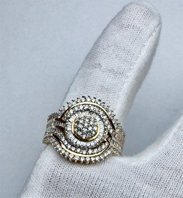 Zlatý prsten s brilianty a diamantovými bagetami 2,20ct. - TOP, prsten je osazen 116 ti přírodními diamanty - brilianty a bagety o váze cca. 2,20 ct. H/VSI-SI , prsten je vyrobený ze zlata 585/1000 o váze 6,3 gramů, velikost 57.