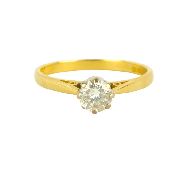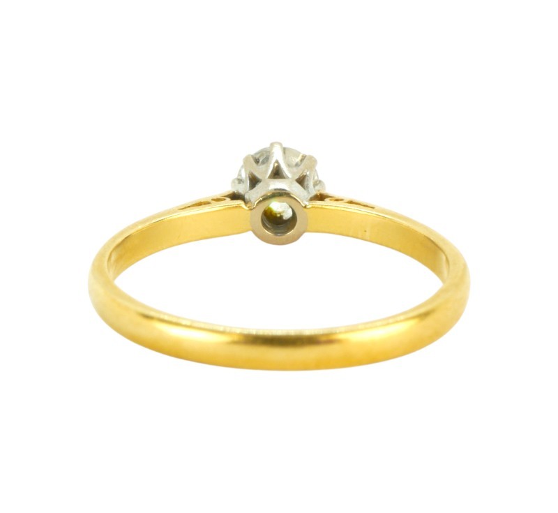 Prsten vyrobený z kombinace bílého a žlutého zlata ryzosti 585/1000 s diamantem briliantového brusu hmotnosti 0,26 ct. Velikost prstenu 54, celková hmotnost 2,24 g.