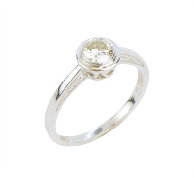 Prsten s typickým Art deco gravírováním vyrobený z bílého zlata ryzosti 585/1000 je osazen diamantem hmotnosti 0,50 ct (barva G-H/čistota P1). Velikost 56. Celková hmotnost 2,46 g. K dispozici posudek od gemologa. Původní etue.
