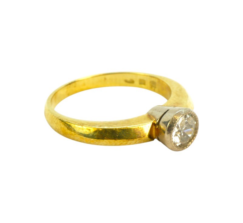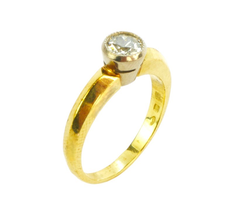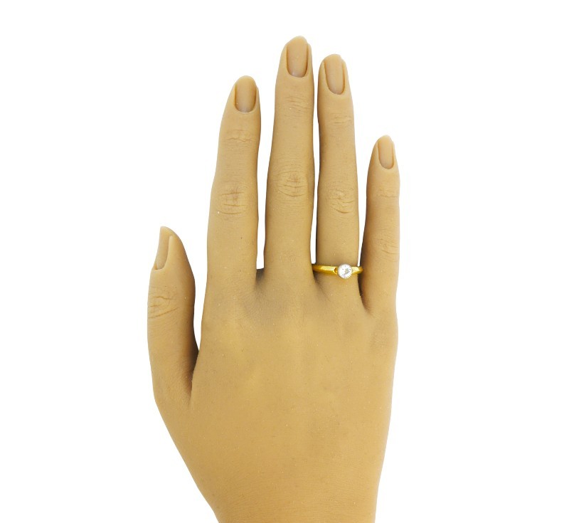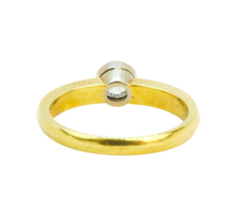 Prsten vyrobený ze žlutého zlata ryzosti 585/1000 s diamantem hmotnosti 0,25 ct (barva G-H/čistota VS). Velikost 52. Celková hmotnost 3,60 g. K dispozici posudek gemologa.