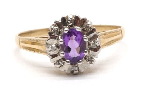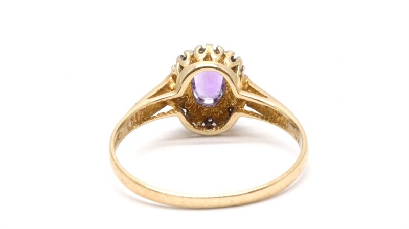 Zlatý prsten s diamanty a ametystem