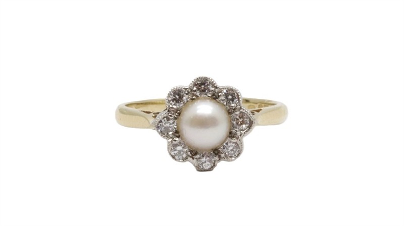 č. 179 986 Zlatý prsten s diamanty a perlou