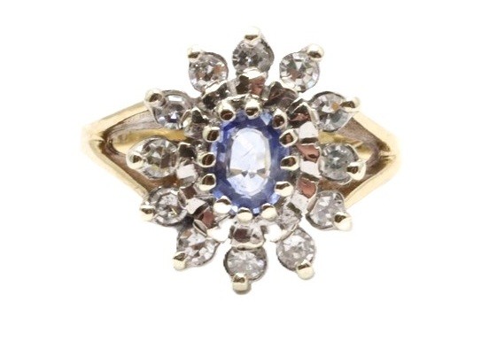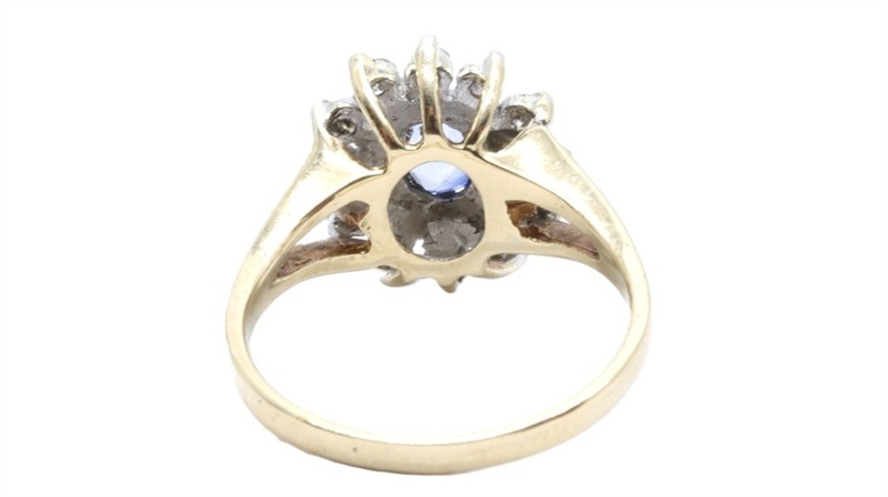 Zlatý prsten s diamanty a safírem