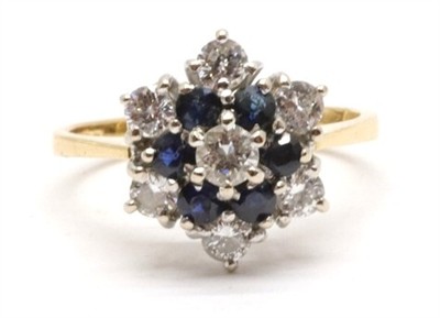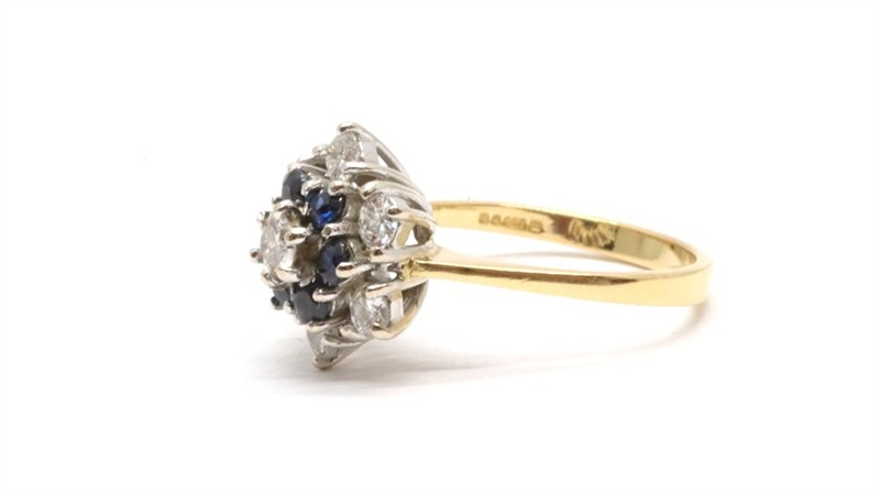 Zlatý prsten s diamanty a safíry