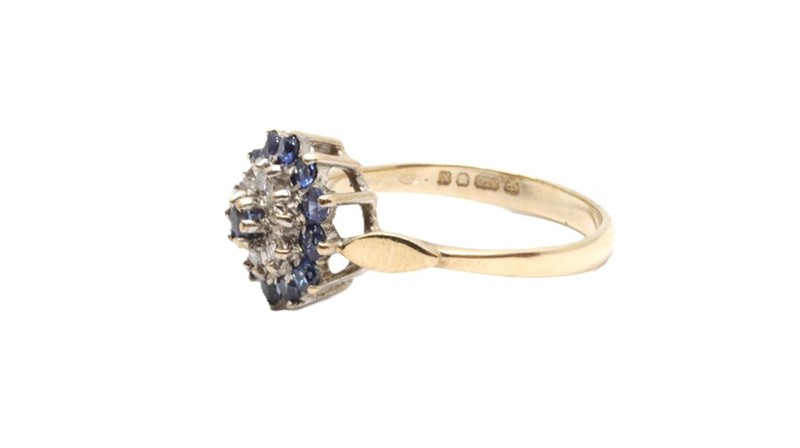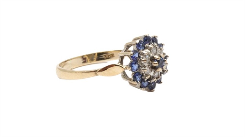 č. 180 002 Zlatý prsten s diamanty a safíry