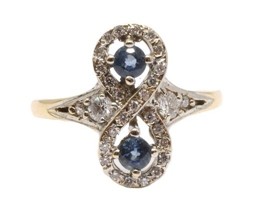 č. 180 022 Zlatý prsten s diamanty a safíry