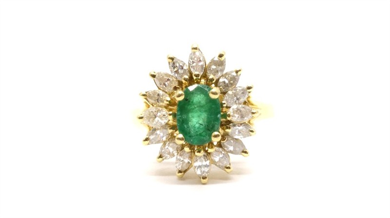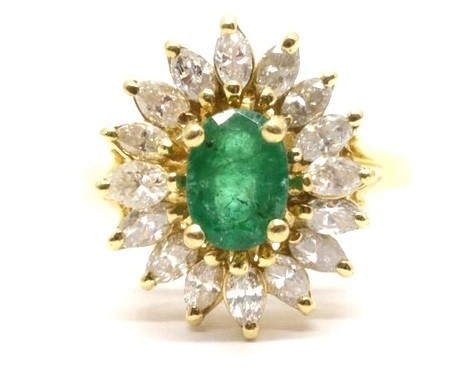 č. 179 795 Zlatý prsten s diamanty a smaragdem