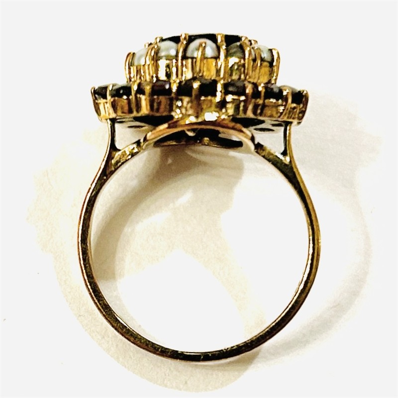 Zlatý prsten s granáty a perlami