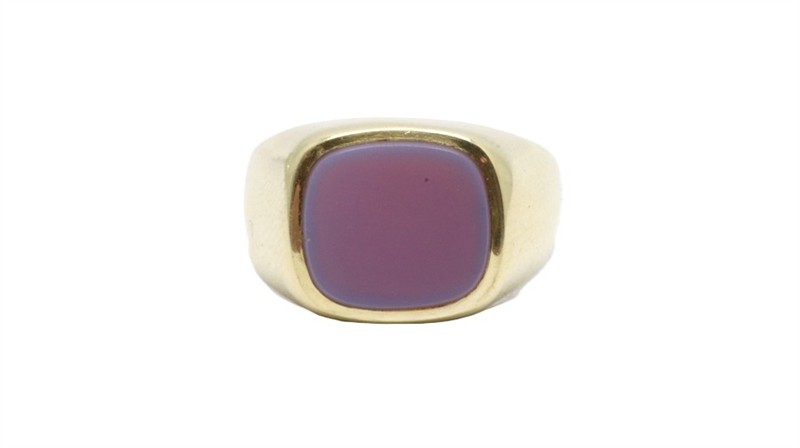 Zlatý prsten s karneolem. Žluté zlato 585/1000. Přírodní karneol. Váha prstenu: 5,72 g. Velikost prstenu: 56.