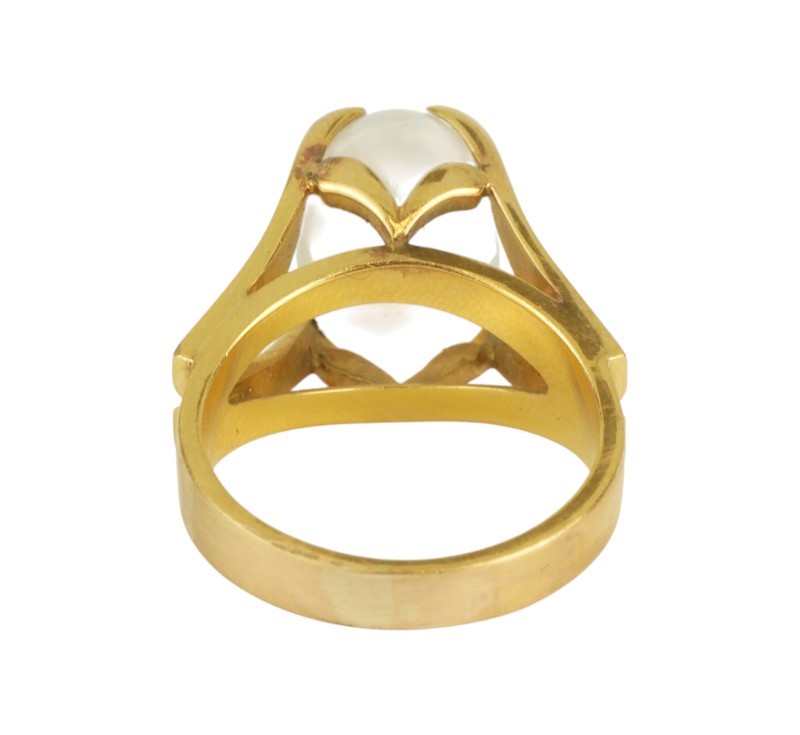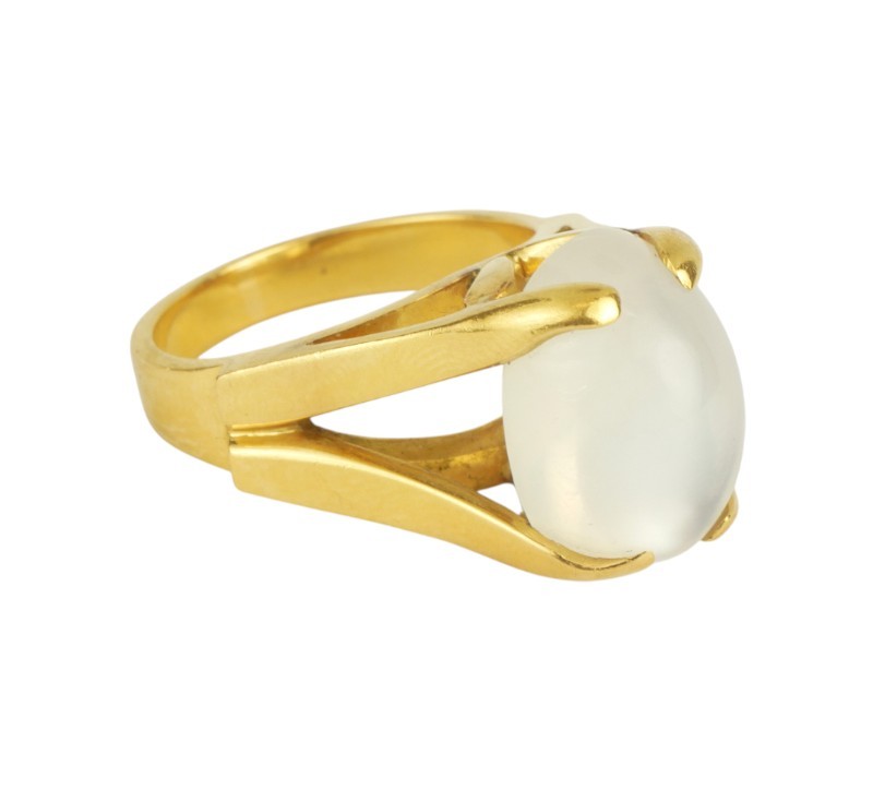 Prsten z vysokoryzostního žlutého zlata (880/1000) zdobí kámen "kočičí oko". Celková hmotnost prstenu je 10,89 g. Velikost 55.