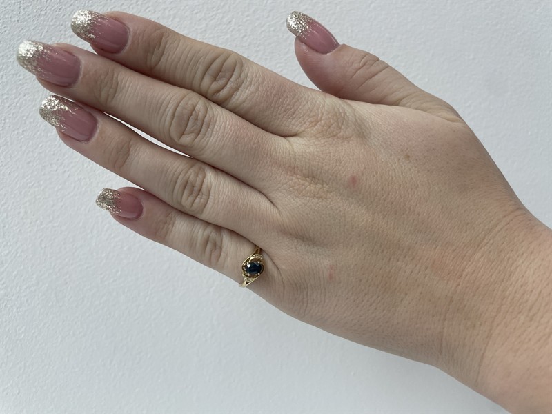 Zlatý prsten s přírodním safírem a přírodními diamanty