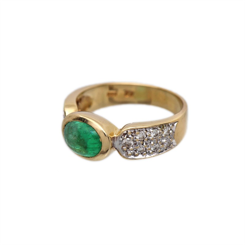 Zlatý prsten s přírodním smaragdem a brilianty