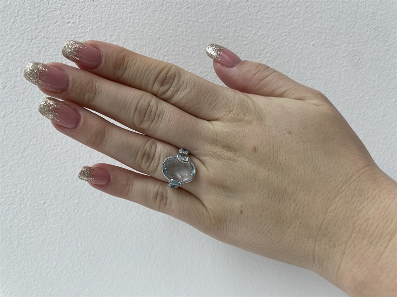 Materiál: bílé zlato o ryzosti 750/1000 Hmotnost: 5,40 g Rozměry: výška hlavy 1,8 × 1,3 cm, velikost prstenu 55 Drahokamy: • přírodní diamanty, celkem 0,10 ct • přírodní topaz 8,10 ct Stav: výborný Doklady: • Osvědčení Puncovního úřadu České republiky Pro vaše maximální pohodlí nabízíme kompletní zlatnický servis: úpravy velikosti, opravy, rhodiování, výměnu kamenů, profesionální čištění, leštění i znalecké odhady.