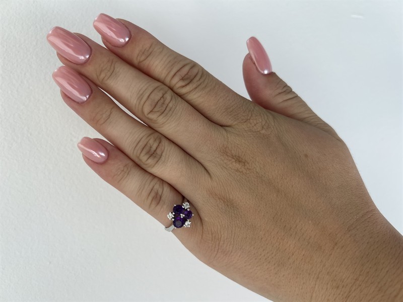 č. 179 623 Zlatý prsten s přírodními ametysty a diamanty
