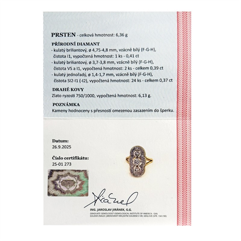 Zlatý prsten s přírodními brilianty 1,17 ct + certifikát