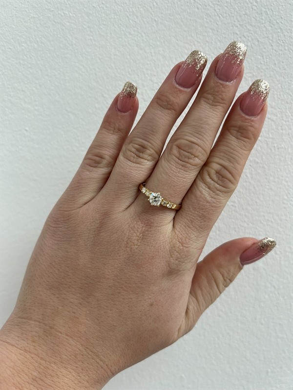 Materiál: žluté zlato o ryzosti 520/1000 Hmotnost: 3,35 g Velikost: 63 Drahokamy: 1 ks přírodní kulatý briliantový diamant Old Europe, 0,74 ct, lehce tónovaně bílý (I–J–K), čistota I1, průměr 5,7–5,8 mm, 4 ks přírodních diamantů, celkem 0,22ct, kulatého a polštářkového fasetového brusu, lehce tónovaně bílé (I–J–K), čistota VS–I2, rozměr 2,4 mm Stav: výborný Doklady: Osvědčení Puncovního úřadu České republiky Certifikát z gemologické laboratoře je součástí šperku Pro vaše maximální pohodlí nabízíme kompletní zlatnický servis: úpravy velikosti, odborné opravy, rhodiování, výměny kamenů, profesionální čištění, leštění i znalecké odhady. Vše přizpůsobíme vašim přáním.