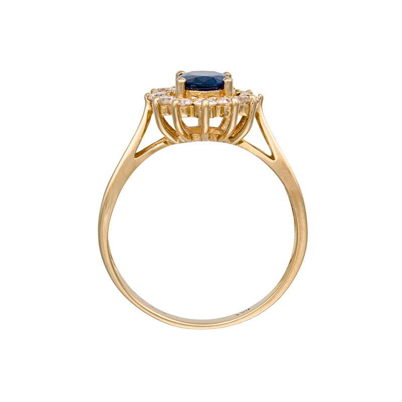Zlatý prsten s přírodními diamanty a přírodním safírem