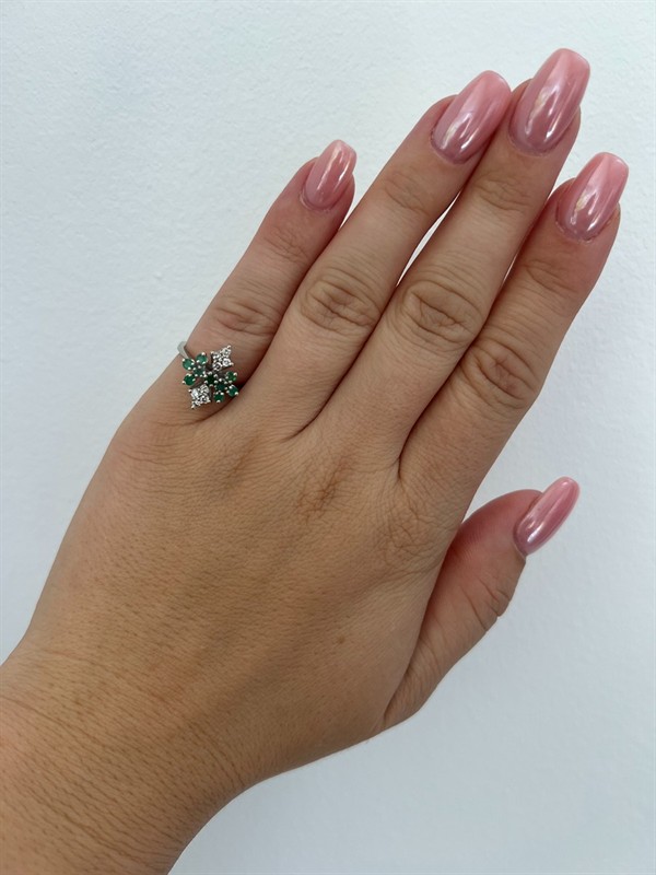 č. 180 220 Zlatý prsten s přírodními diamanty a smaragdy