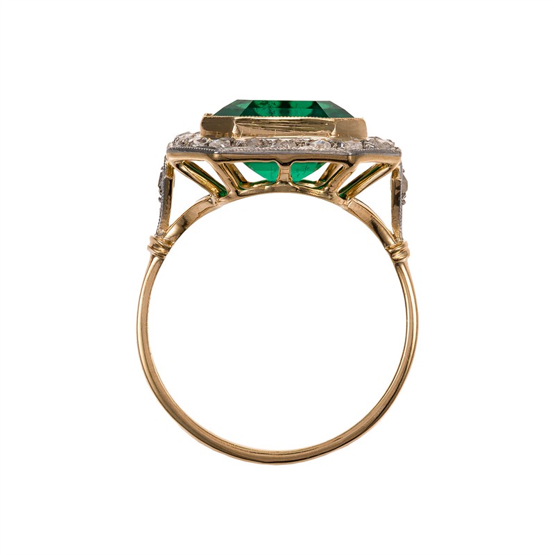 Materiál: žluté zlato o ryzosti 750/1000 Hmotnost: 5,59 g Rozměry: velikost prstenu 55, míry hlavy 2,0 x 1,6 cm Drahokamy: - 1 ks berylového dubletu o hmotnosti 7,35 ct, smaragdový brus, rozměry 14,8 × 10,9 × 6,2 mm, - 24 ks přírodních diamantů, celková hmotnost 0,26 ct, téměř kulaté routy, rozměry 1,5 × 1,7 mm Berylový dublet – složený kámen tvořený dvěma pevně spojenými vrstvami, z nichž vrchní je přírodní beryl. Doklady: - certifikát gemologické laboratoře je součástí šperku Pro vaše maximální pohodlí nabízíme kompletní zlatnický servis: úpravy velikosti, odborné opravy, rhodiování, výměny kamenů, profesionální čištění, leštění i znalecké odhady. Vše přizpůsobíme vašim přáním.