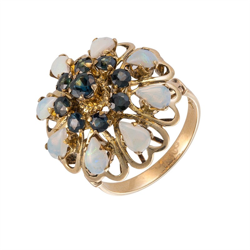 Zlatý prsten s přírodními safíry 1,80 ct a přírodními opály