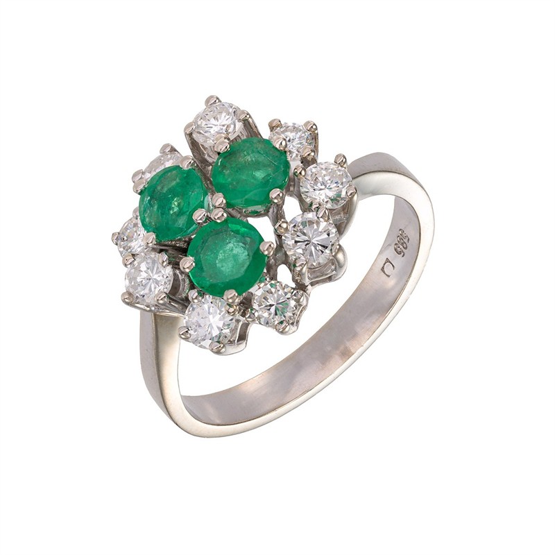 Zlatý prsten s přírodními smaragdy a přírodními diamanty