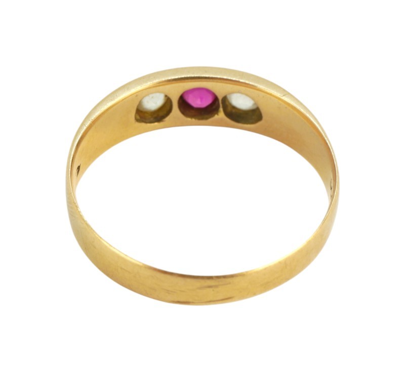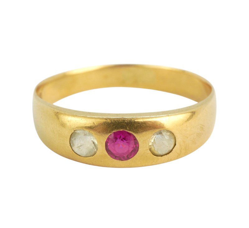Zlatý prsten s rubínem a leukosafíry