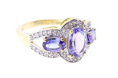 č. 179 052 Zlatý prsten s tanzanity a přírodními zirkony