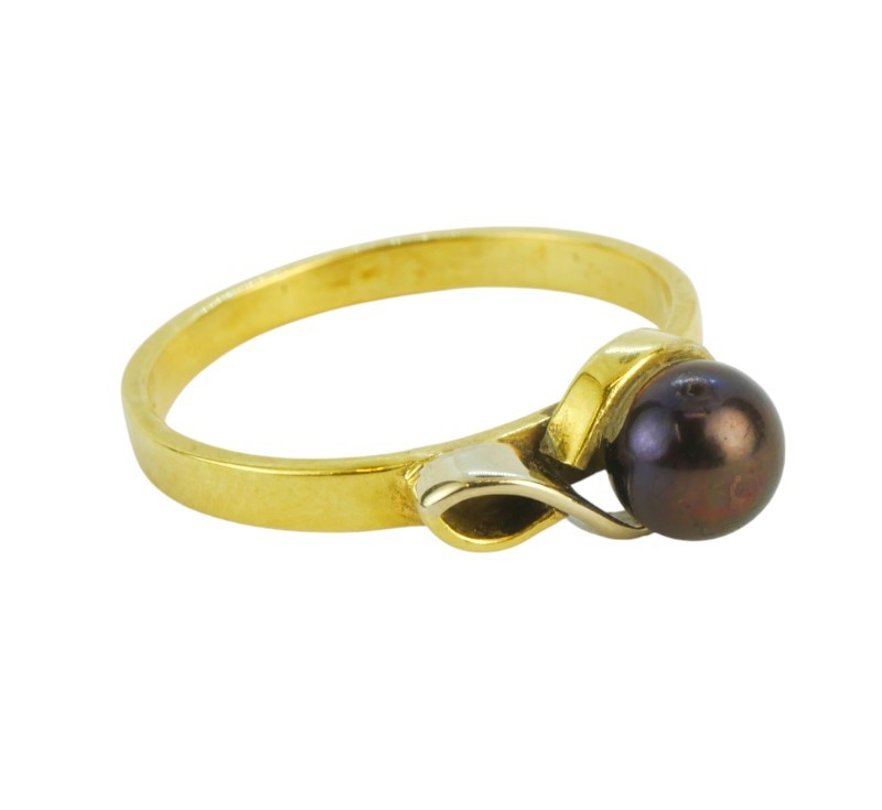 Zlatý prsten s tmavou perlou