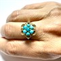 Zlatý prsten s tyrkysy - květina, 18 karátů