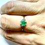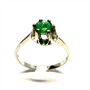 Drobnější, půvabný prsten z bílého zlata. Šperk zdobí sytě zelený, přírodní smaragd, pomocí 6ti krapen zasazený na střed květu. Zlato ryzosti 333/1000, celková váha 1,34 g. Velikost 53. Výborný stav.