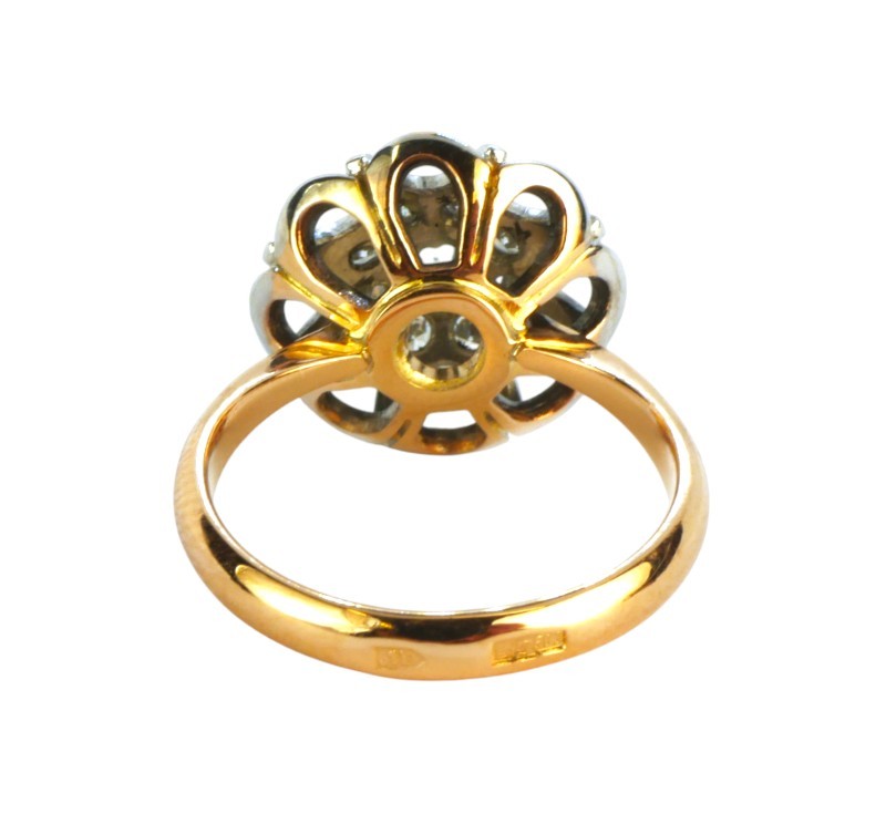 Prsten vyrobený z bílého a růžového zlata ryzosti 585/1000 (punc labuť) zdobený centrálním smaragdem a diamanty. Celková hmotnost 4,72 g. Rozměry hlavy 1,5 x 1,5 cm. Velikost prstenu 53