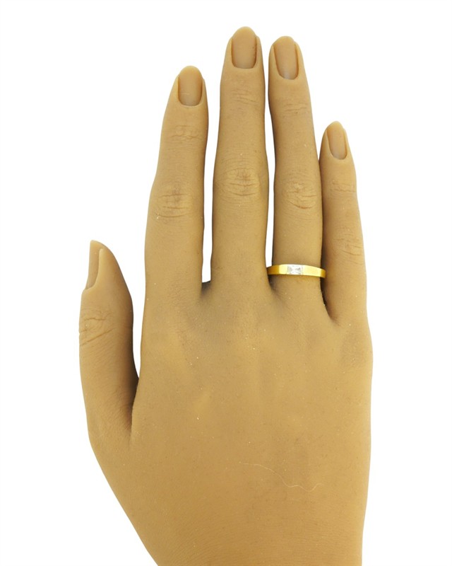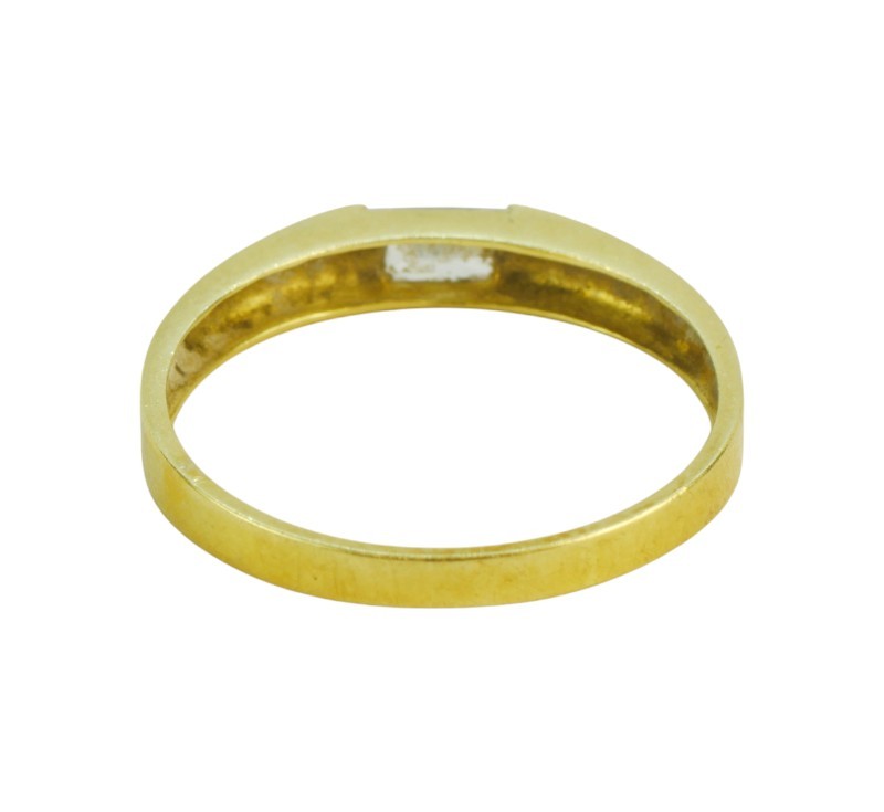 Prsten ze žlutého zlata ryzosti 585/1000 se zirkonem. Celková hmotnost prstenu je 1,95 g. Velikost 56.