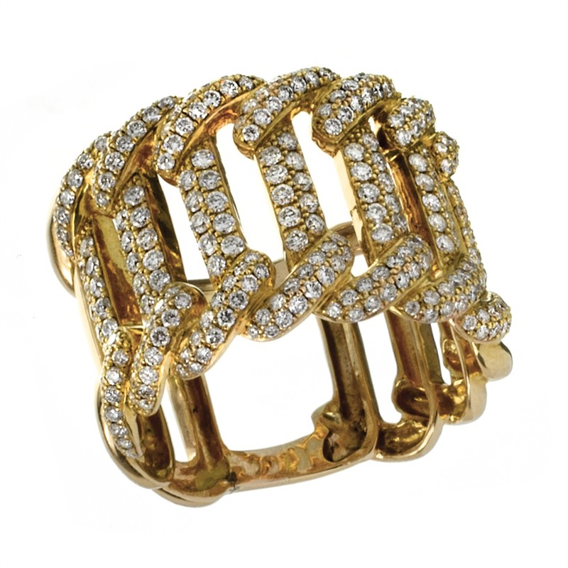 Prsten z růžového zlata zdobený brilianty. Au 750/1000, hmostnost:11,00g, celková hmotnost briliantů 2 ct (kvalita VS, barva G). 2. polovina 20. století. velikost prstenu: cca 56.