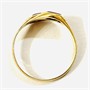 Elegantní prsten z období secese se zřídka se vyskytujícím typem hlavice, ta je komponovaná iluzivně jako ze dvou prstenů, osazeno přírodním almandinem a oranžovým sardonyxem oválného plochého brusu, ramena šíny jemně ryta. Kvalitní vídeňská zlatnická práce z konce 19. století. Zhotoveno z narůžovělého žlutého 14 karátového zlata, tj. o ryzosti 580/1000; rakousko-uherský punc Z-27 (liška 4) s písmenem "A" (značící vídeňský puncovní úřad, mistrovská značka "EK" zevnitř šíny. Hmotnost 2,41 g, velikost 57, šířka 9 mm. Stopy nošení, rytí setřeno, sardonyx v jednom bodě uštíplý, zohledněno v ceně.