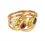 č. 179 685 Zlatý starožitný prsten "hadi" s červeným a modrým kamenem