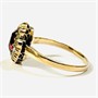 Zlatý starožitný prsten s granátem a perlami