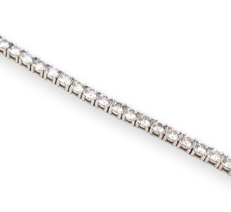 Luxusní tzv. tenisový náramek z bílého zlata ryzosti 750/1000 s 64 zasazenými přírodními diamanty moderního briliantového brusu celkové hmotnosti cca 1,70 ct, barva G a čistota SI. Délka 18 cm. Celková hmotnost 8,88 g.