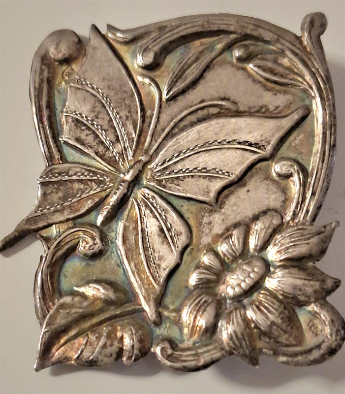 Originální stříbrná brož s unikátní barevnou mozaikou sestavenou z vlasových skleněných tyčinek, art deco 30. léta m. s., rozměr 4,2 x 3,3 cm, 14 g, stříbro 820/1000 (Osvědčení PÚ,) Zlatnické družstvo PRIMOSA (1929 – 1952) nejstarší zlatnické družstvo v Československu, zboží vyrábělo podle návrhu slavných designerů, svou precizností a vysokou kvalitou šperků si vydobylo vysoké renomé doma i v zahraničí. Většina jeho produkce směřovala na export. V ČR se jeho výrobky se prodávaly v prodejnách Družstevní práce. Likvidováno v roce 1952 Tepaná stříbrná brož s motýlem a květinou, stříbro 800/1000, trojúhelník s pětkou, 3,5 x 4 cm, mistovská značka RV v oválu, art deco, hmotnost 7 g