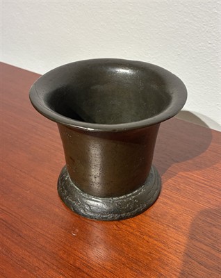 Bronzový hmoždíř s krásnou hnědou patinou a ve skvělém stavu (z anglické sbírky), přelom 16. a 17.století, typický hladký tvar pro anglický hmoždíř z této doby. Výška 11,0 cm, horní průměr 13,0 cm, váha 1,64 kg. Koupeno před léty v Anglii v renomovaném starožitnictví “Early Oak Furniture and Works of Art” se 40.letou tradicí a zaměřením hlavně na anglický středověk. Nákupní cena byla vyšší, než je tato nabídka.