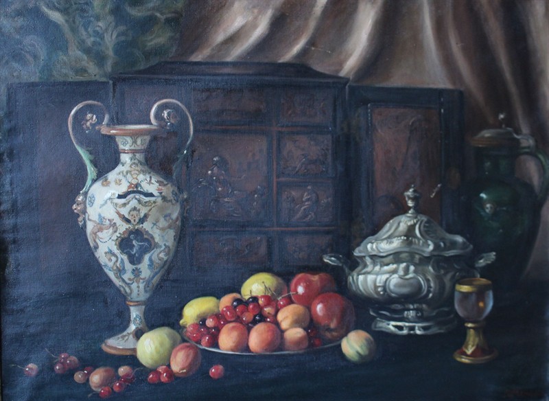 č. 181 133 Anna Plischke - Zátiší s vázou a ovocem - Olej
