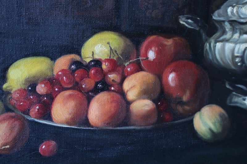 Anna Plischke (1895 - 1983) Zátiší s vázou a ovocem   Signováno viz foto. Olej na plátně. Rozměry malba: 75 x 100 cm.