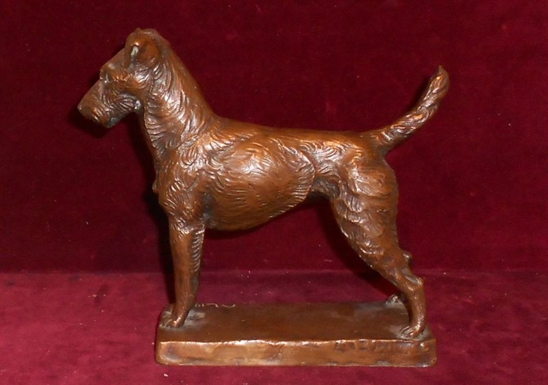 ANTONÍN LHOTÁK - PES, 1919 Bronz, výška 19 cm, základna 16 x 7 cm. Signováno A.L.1919. Autor Antonín Lhoták nar. 1897, žák Drahoňovského a Španiela. Významný český sochař, zastoupen v NG Praha a jinde. Snad nejvýznamnější dílo je třímetrový pomník Alšův v Miroticích.
