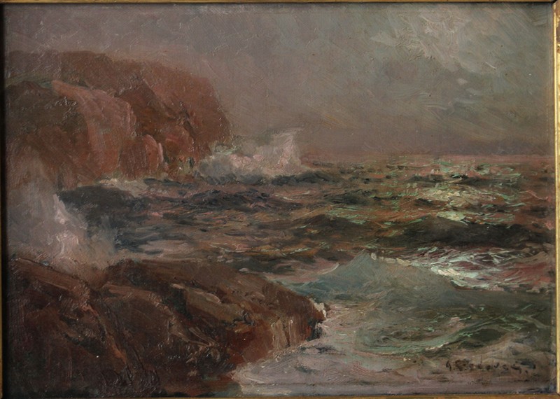 olej/karton, rozměr 25 x 35 cm,Plus ram, značeno vpravo dole, rámováno. oAutoři Arsenij Petrovič Sosnovskij Narodil se 20. 8. 1895 v Kyjevě a zemřel 23. 3. 1967 v Lyusechil ve Švédsku. Byl synem ředitele školy. V roce 1912 se zapsal na univerzitu v Kyjevě, kde studoval historii a filozofii. V roce 1914 se dobrovolně přihlásil na frontu, bojoval v hodnosti poručíka na lodi Orkan. Ve 20. letech 20. století pobýval v Černé Hoře, kde se učil malovat na střední škole v Cetinje. Později se usadil se svou ženou v Bělehradě. Maloval převážně pohledy na moře. Společně se svou manželkou vystavoval v Záhřebu, Praze, Paříži a Bruselu. Účastnil se též skupinových výstav v Bělehradě a Florencii. V 50. letech byl vyhnán do Bulharska, potom odešel do Turecka, později do Terstu. V roce 1954 odešel s manželkou za příbuznými do Švédska. Usadil se v Lyusechil u Goteborgu, kde pokračoval v malování. Jeho díla jsou umístěna v námořním muzeu v Kotoru, v paláci krále Mikuláše v Cetinje, v galeriích v Záhřeb