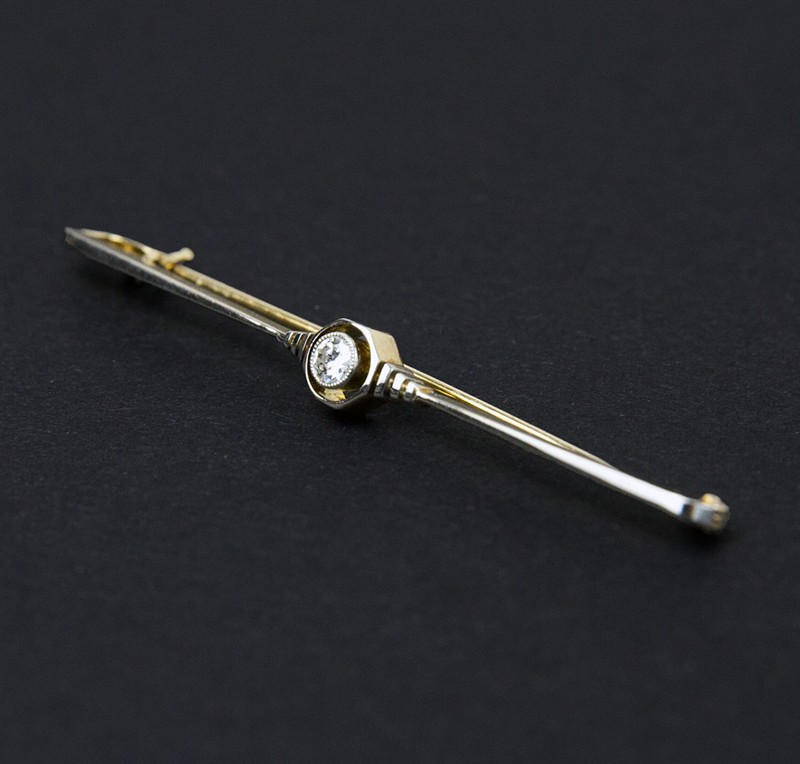 Art deco zlatá brož s diamantem