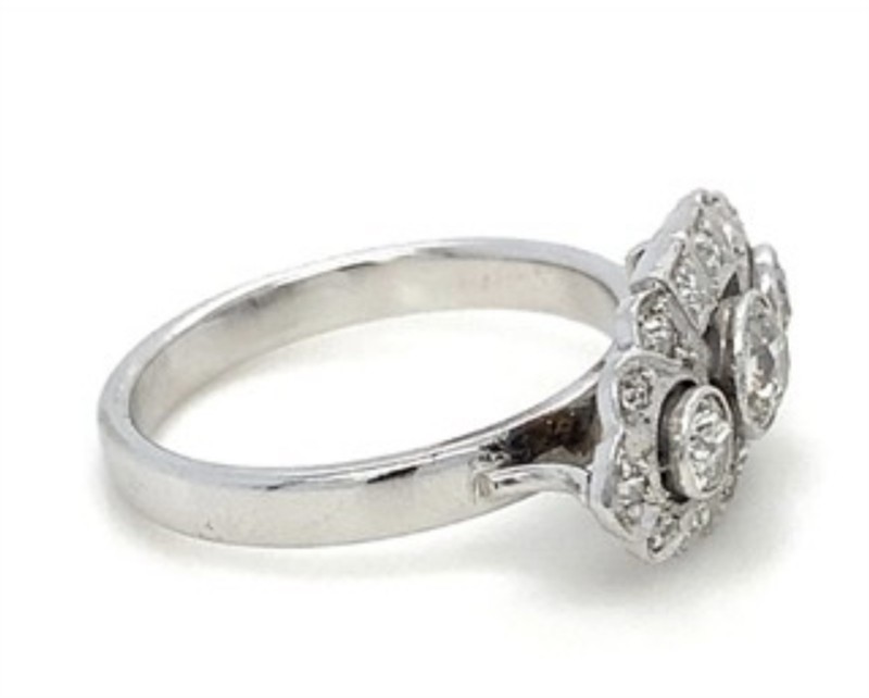 Starožitný ArtDeco prsten z bílého zlata s brilianty ,Au 750/585/1000, hmotnost 5,40g, velikost 57, diamanty o celkové váze cca 1.00 ct., atest punc.úřadu, Krásná Prvorepubliková práce, Odborně vyčištěno zlatníkem
