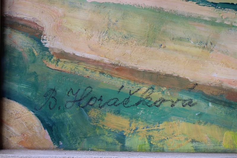 Bohumila Horáčková - Letní den   Signováno viz foto. Olej na kartonu. Rozměry: 30 x 79 cm malba, 41 x 90 cm rám.