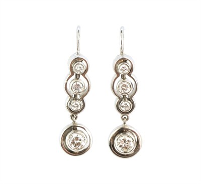 Náušnice z bílého zlata ryzosti 585/1000 zdobí přírodní diamanty briliantového brusu celkové hmotnosti cca 0,95 ct. Délka náušnic cca 2,5 cm, celková hmotnost 6,62 g.