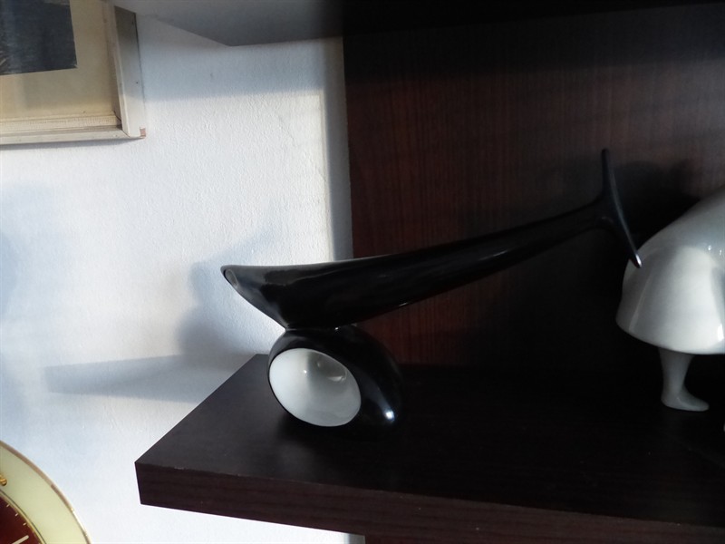 100% bez otluků, prasklin a lepení, stav podle fotek 15 x 27 x 5 cm Ryba patří mezi nejméně běžné duchcovské figurky z bruselského období. Jejím autorem je Jaroslav Ježek. Podle otvoru v kulatém podstavci a rybím oku lze návrh datovat kolem roku 1960.